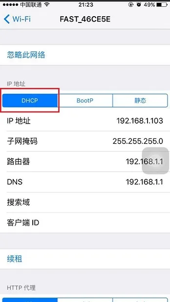 手機(jī)的IP地址應(yīng)設(shè)置為DHCP