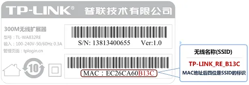 (1)、TP-Link擴(kuò)展器的默認(rèn)WiFi名稱通常為:TP-LINK_RE_XXXX(X代表MAC地址后四位),具體信息可查看設(shè)備底部的標(biāo)簽。