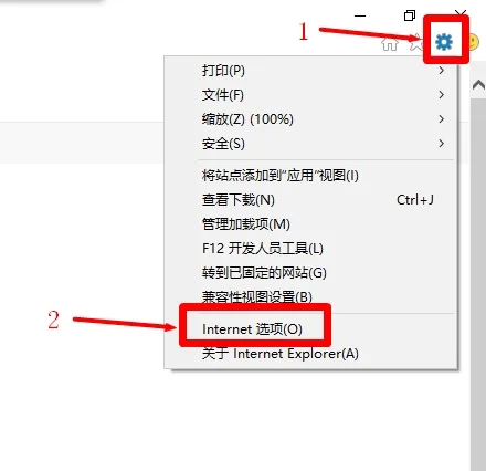 2、點(diǎn)擊右上角的“設(shè)置”圖標(biāo),隨后選擇“Internet選項(xiàng)”