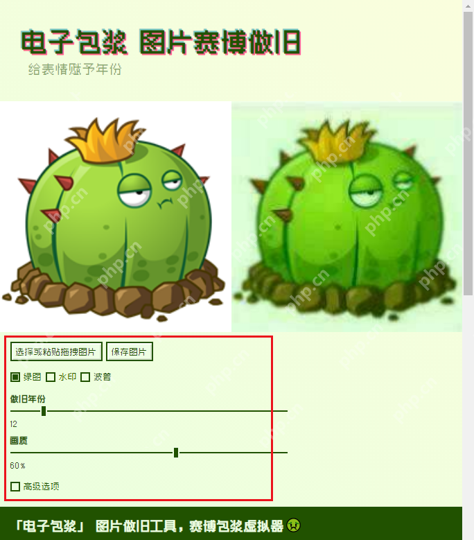 電子包漿生成器是什么?電子包漿生成器是一款能夠?qū)⒏咔鍒D片瞬間轉(zhuǎn)化為懷舊渣畫質(zhì)的工具。使用這個工具制作的包漿圖片非常適合制作表情包。選擇一張合適的圖片,轉(zhuǎn)換成包漿畫質(zhì),并添加文字,制作表情包將變得非常完美!有了這個工具,大家可以輕松自制,操作非常簡單!
