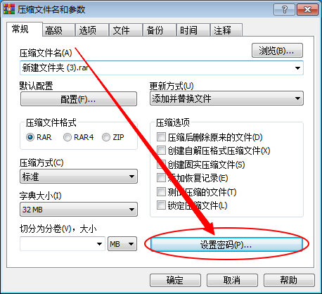 2、在壓縮文件界面,點(diǎn)擊下方的設(shè)置密碼。