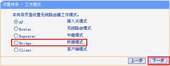 3、選擇“Bridge 橋接模式”——>點(diǎn)擊“下一步”。