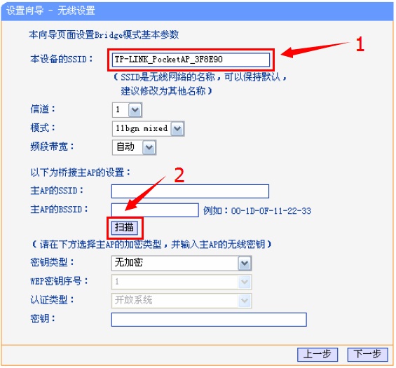 4、設(shè)置“本設(shè)備的SSID”——>點(diǎn)擊“掃描”
