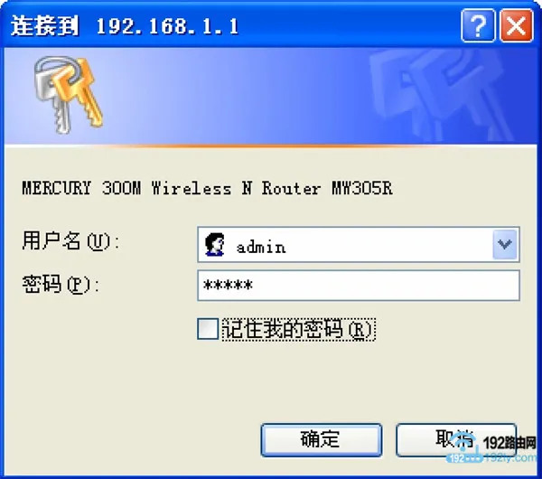 在瀏覽器中輸入:192.168.1.1,打開登錄頁面——>在“用戶名”與“密碼”框中填入:admin——>點(diǎn)擊“確定”鍵,進(jìn)入舊版水星路由器的設(shè)置頁面。