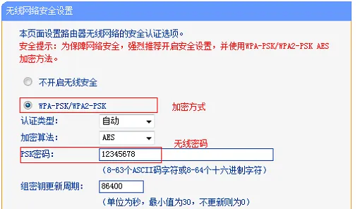 2、繼續(xù)點擊“無線設置”——>“無線安全設置”,選擇“WPA-PSK/WPA2-PSK”加密方式——>設置“PSK密碼”——>點擊下方的“保存”按鈕。
