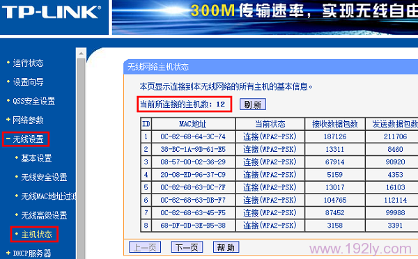 可以通過訪問無線路由器管理界面,在“無線設(shè)置”——>“主機(jī)狀態(tài)”中查看當(dāng)前連接設(shè)備的狀態(tài)。