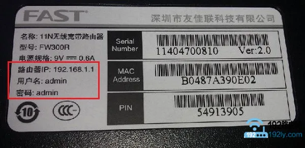 一些路由器可能會(huì)預(yù)設(shè)默認(rèn)的管理員密碼,您可以嘗試用這些默認(rèn)密碼登錄。通常情況下,默認(rèn)的管理員密碼會(huì)標(biāo)注在路由器底部的銘牌上,如下圖所示。