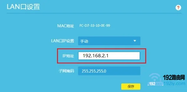2、找到路由器的“LAN口設(shè)置”選項(xiàng),把路由器的LAN口IP地址,修改為:192.168.2.1