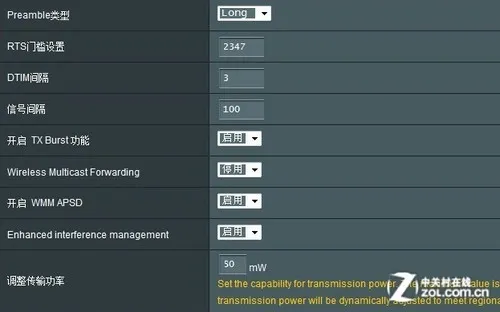 下面我們把華碩RT-N66U無線路由器的發(fā)射功率調(diào)整為50mW。