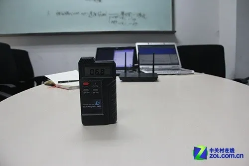 我們選定了ZOL辦公區(qū)的一個較為安靜的會議室作為測試環(huán)境,通過LZT-6200高頻電磁輻射測試儀測量,這里的電磁輻射約為0.2μW/c㎡,是一個相對“純凈”的測試環(huán)境。