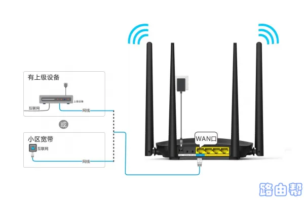 路由器的WAN接口應(yīng)通過(guò)網(wǎng)線連接到貓的網(wǎng)口(LAN口)。如果沒(méi)有使用貓,可以直接將入戶的寬帶網(wǎng)線插入路由器的WAN接口。