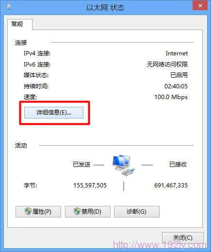 (5)在彈出的窗口中找到“默認(rèn)網(wǎng)關(guān)”這一項(xiàng),其后的地址即為路由器的IP地址。