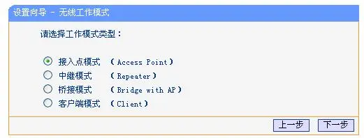 4、選擇接入點(diǎn)模式:“接入點(diǎn)模式(Access Point)”–>“下一步”。