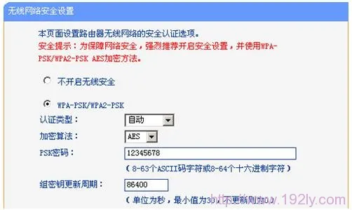點(diǎn)擊“無(wú)線設(shè)置”–>“無(wú)線安全設(shè)置”,查看無(wú)線加密方式和PSK密碼,并記錄下來(lái),如下圖所示: