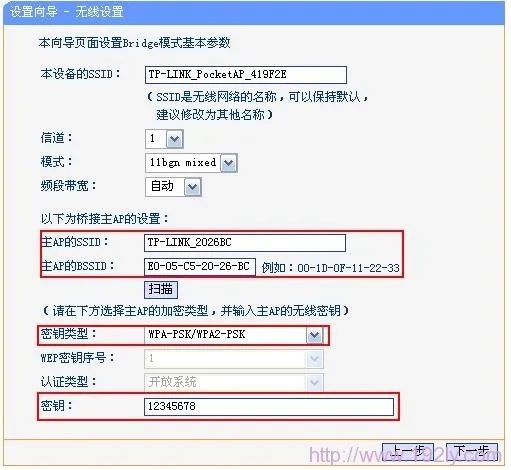 填寫主AP的相關(guān)參數(shù),之前已記錄的信息可直接填入。