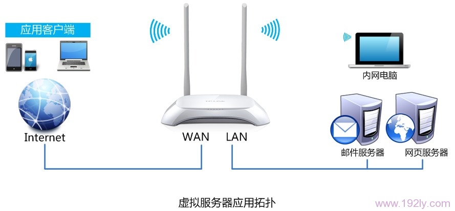 在正常情況下,Internet上的用戶無法直接訪問局域網(wǎng)內(nèi)的郵件服務(wù)器和Web網(wǎng)頁服務(wù)器;然而,可以通過在TL-WR842N路由器上配置虛擬服務(wù)器(端口轉(zhuǎn)發(fā))來實現(xiàn)這一目標(biāo)。