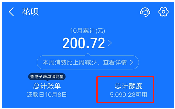 1. 在花唄頁面,點(diǎn)擊“總額度”。