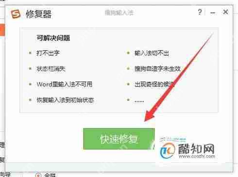 3. 一鍵修復(fù):進(jìn)入修復(fù)器界面后,點(diǎn)擊“一鍵修復(fù)”按鈕。系統(tǒng)將自動(dòng)檢測(cè)并修復(fù)搜狗輸入法可能存在的問題。