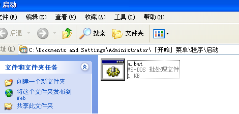 4,然后將a.bat放入啟動文件夾內。
