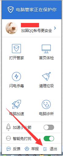 右擊管家托盤(pán)圖標(biāo)退出管家