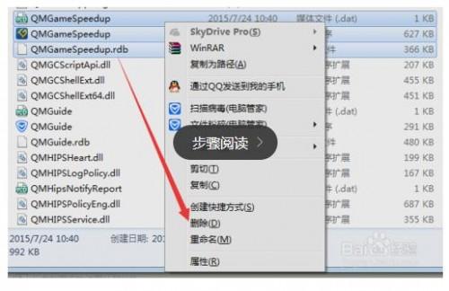 將“QMGameSpeedup.dat”、“QMGameSpeedup.exe”和“QMGameSpeedup.rdb ”刪掉后重啟計(jì)算機(jī)即可