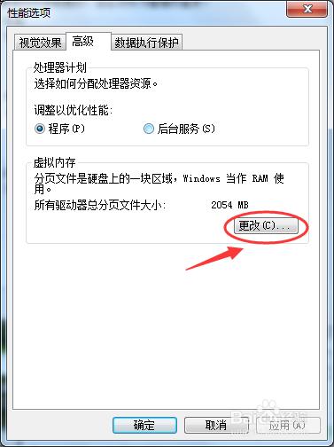 6.在性能選項卡中選擇高級——虛擬內(nèi)存——更改,打開。