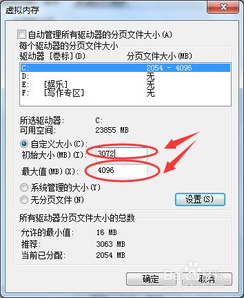 比如:筆者的是2G物理內(nèi)存,2G設(shè)置為3072-4096MB(2G內(nèi)存是1.5-2倍),