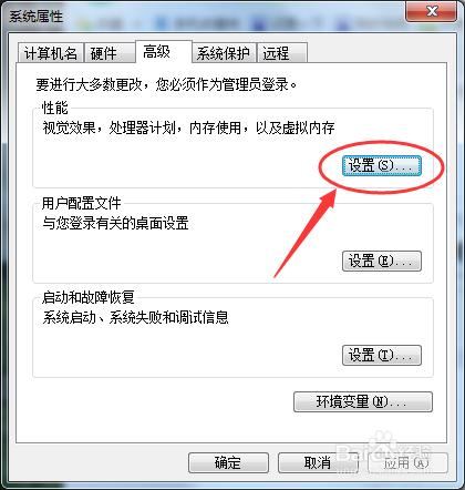 5.在彈出的選項卡中選擇高級——性能——設(shè)置,打開。