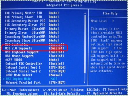 方法二:在 CMOS 中禁用 USB2.0 Supports。