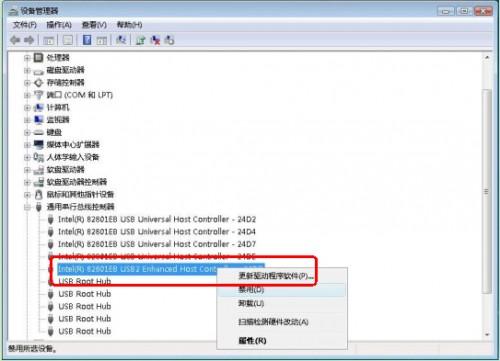 方法一:在“設(shè)備管理器”中禁用USB2.0設(shè)備。