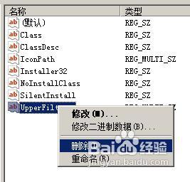 在右側(cè)的查找結(jié)果中右鍵單擊upperfilters,刪除。