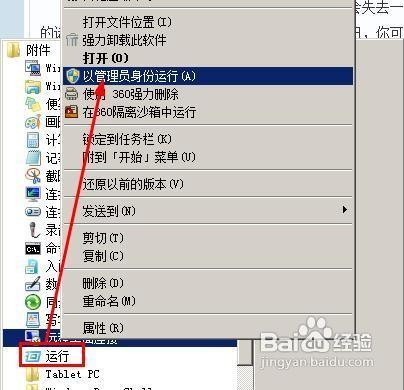 找到運(yùn)行,這里需要注意一下,右鍵單擊它,然后偶選擇以管理員身份運(yùn)行。如果你本身就是管理員運(yùn)行的,那么直接打開即可。