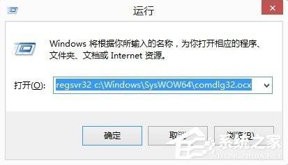 4、對于64位的系統(tǒng)。在“運行”中直接輸入“regsvr32 c:WindowsSysWOW64comdlg32.ocx”