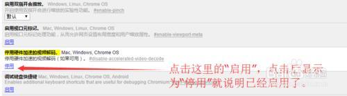 2.點擊“啟用”來停用硬件加速的視頻解碼功能。