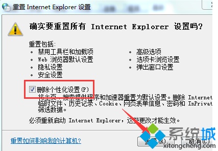 3、勾選“刪除個性化設(shè)置”,點(diǎn)擊確定;
