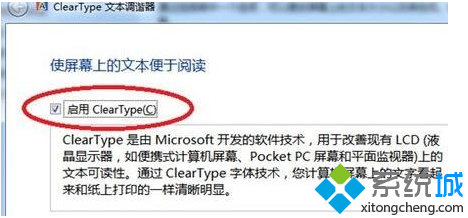 3、勾選“啟用ClearType”,確認(rèn)啟用后點擊下一步;