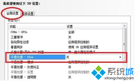 2、打開管理3D設(shè)置,在全局設(shè)置下找到“平滑處理-FXAA”,查看是否開啟,如果開啟則將其關(guān)閉;