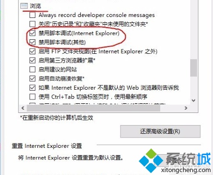 4、在列表中里找到“禁用腳本調(diào)試”選項(xiàng),并全部勾選,點(diǎn)擊確定;