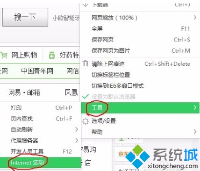 2、從右上角打開(kāi)Internet選項(xiàng);
