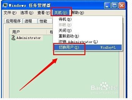 2、然后看到菜單選項里的“關(guān)機”那里,點擊打開后有個“切換用戶”選項,點擊即可切換用戶了。