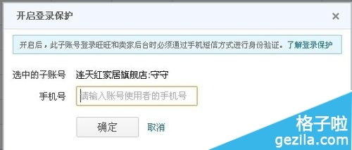 3、可以看到子賬號的“安全信息”,如沒有開啟“手機(jī)保護(hù)”需先開啟,點(diǎn)擊需要開啟“登錄保護(hù)”的賬號。如圖3所示