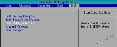 第二步:選擇【Exit】菜單下面的【Load Setup Defaults】并回車,選擇【Yes】之后,再次回車。