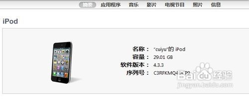 5、之后,只要不對(duì)系統(tǒng)做優(yōu)化設(shè)置,那么每當(dāng)iphone連接上電腦時(shí)iTunes就能自己?jiǎn)?dòng)識(shí)別手機(jī)了,我們可以通過iTunes下載安裝自己喜歡的應(yīng)用或者管理手機(jī)上的視頻音頻等