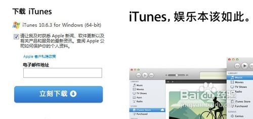 3、之后,網(wǎng)站會(huì)自動(dòng)檢測(cè)當(dāng)前計(jì)算機(jī)的操作系統(tǒng)并選擇好合適版本的Itunes,如果要了解Apple的相關(guān)動(dòng)態(tài)就留下自己的郵箱,現(xiàn)在我們要做的只是點(diǎn)擊“立即下載”