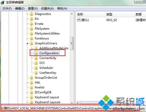 2、依次展開HKEY_LOCAL_MACHINE\SYSTEM\ControlSet001\Control\GraphicsDrivers\Configuration,在右側(cè)雙擊打開scaling;