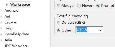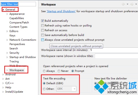 3、點(diǎn)擊General——Workspace——Text file encode;