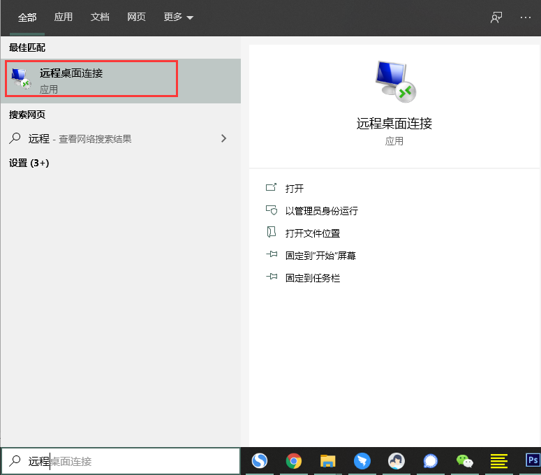 1.通過(guò)左下角的搜索功能,大家可以搜索“遠(yuǎn)程”,點(diǎn)擊彈出的的遠(yuǎn)程桌面連接開(kāi)始連接電腦;