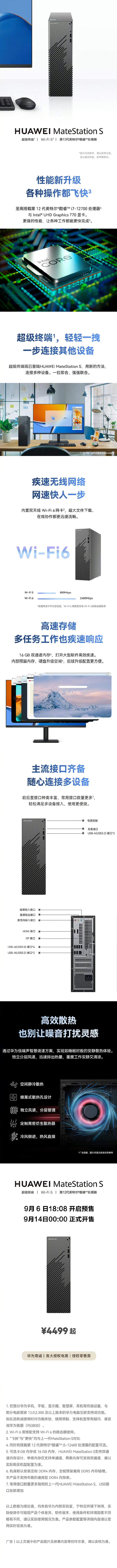 華為 MateStation S 12 代酷睿版將于 9 月 6 日 18:08 在華為商城、京東、天貓、華為線上授權店正式開啟預售,預售期間享受單主機優(yōu)惠 100 元,顯示器套裝優(yōu)惠 200 元。具體售價如下: