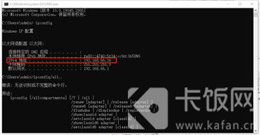 3、最后打開(kāi)我們的CMD命令行對(duì)話框輸入【ipconfig或ipconfig/all.】,輸入后就可以到我們的IP地址了;