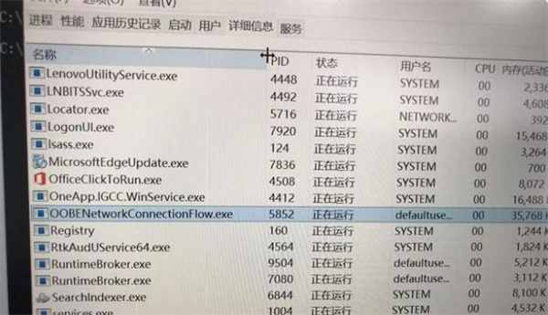 3、最后我們在找到【OOBENetwork Connection Flow】進(jìn)程或者是【網(wǎng)絡(luò)連接流】進(jìn)程,選中后點(diǎn)擊【結(jié)束任務(wù)】這樣就可以跳過聯(lián)網(wǎng)了;